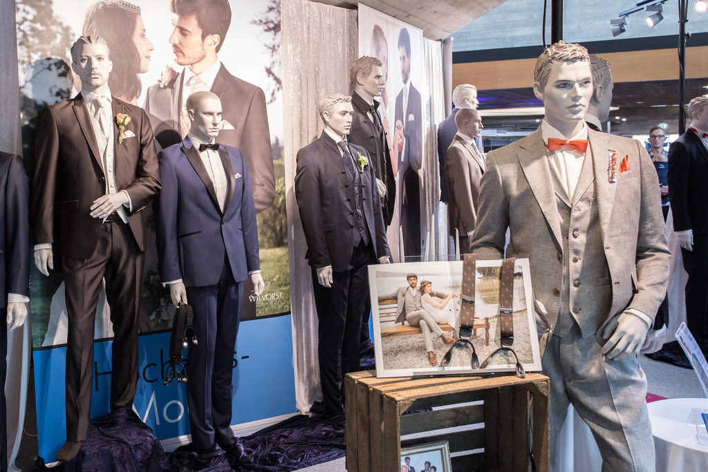 Stilvolle Anzüge und Accessoires für Bräutigam und Gäste – perfekt abgestimmt.